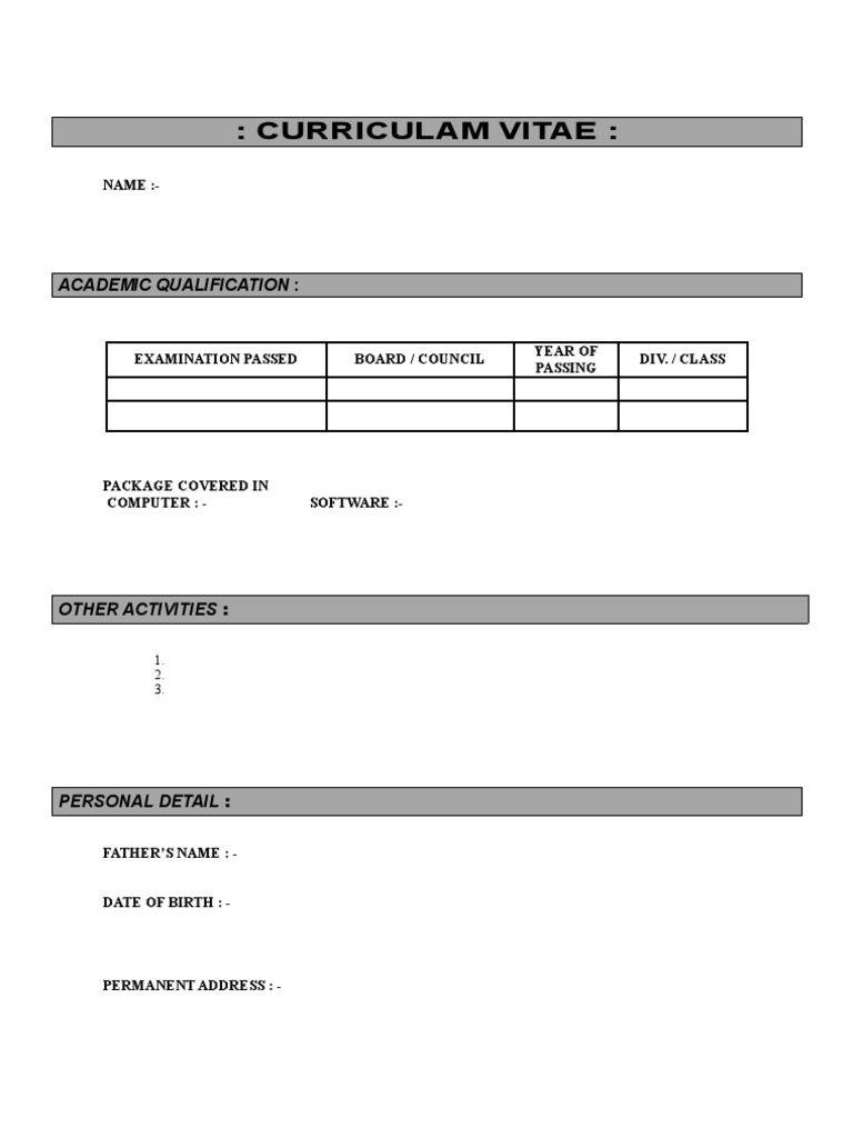 If you are a recent graduate or have recently entered the workforce, you but the functional cv format is rarely the best one, as hiring managers or recruiters might think you're hiding something by omitting your experience. Follow these tips while framing your cv: A cv, short form of curriculum vitae, is similar to a resume. You must choose the format of your resume depending on your work and personal background. Personal data, contact details, education, professional experience, and.